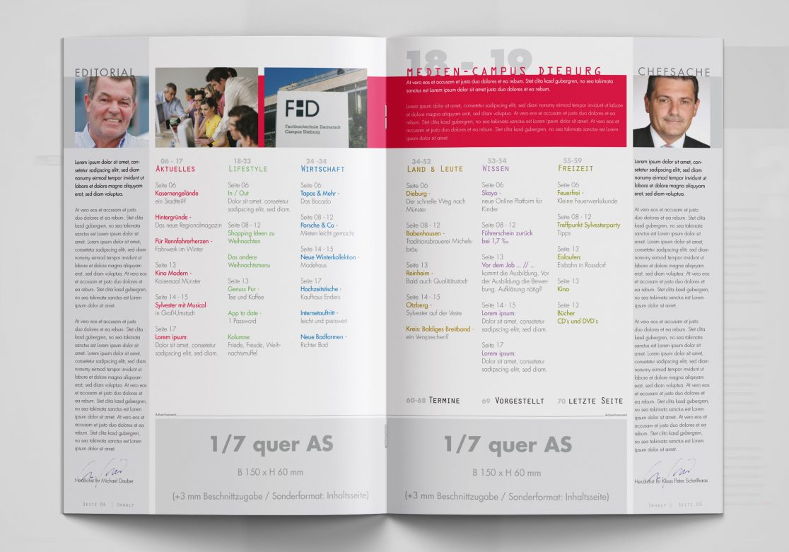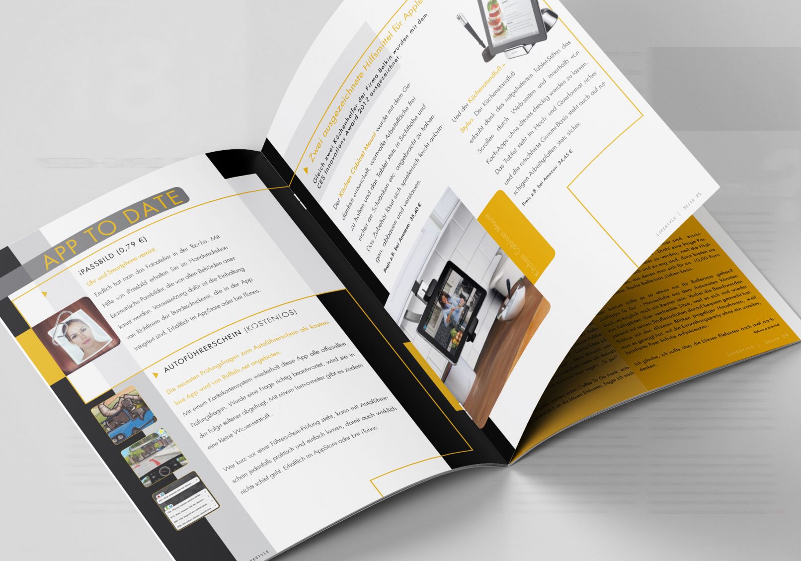 Mein Part bei diesem Projekt war neben der visuellen, auch der strukturelle Aufbau des Magazins: das Logo, das Layout mit Satzspiegel, Absatz- und Objektformaten, die Mediadaten und Anzeigenstruktur und letztlich ein eierlegendes und wollmilchsauendes InDesign-Template – außerdem ein kleines Corporate Design für den Verlag M1-Medien.