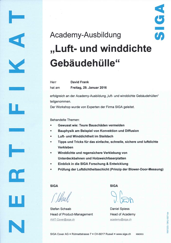 Teilnahme Academy-Ausbildung für Luft- und winddichte Gebäudehülle