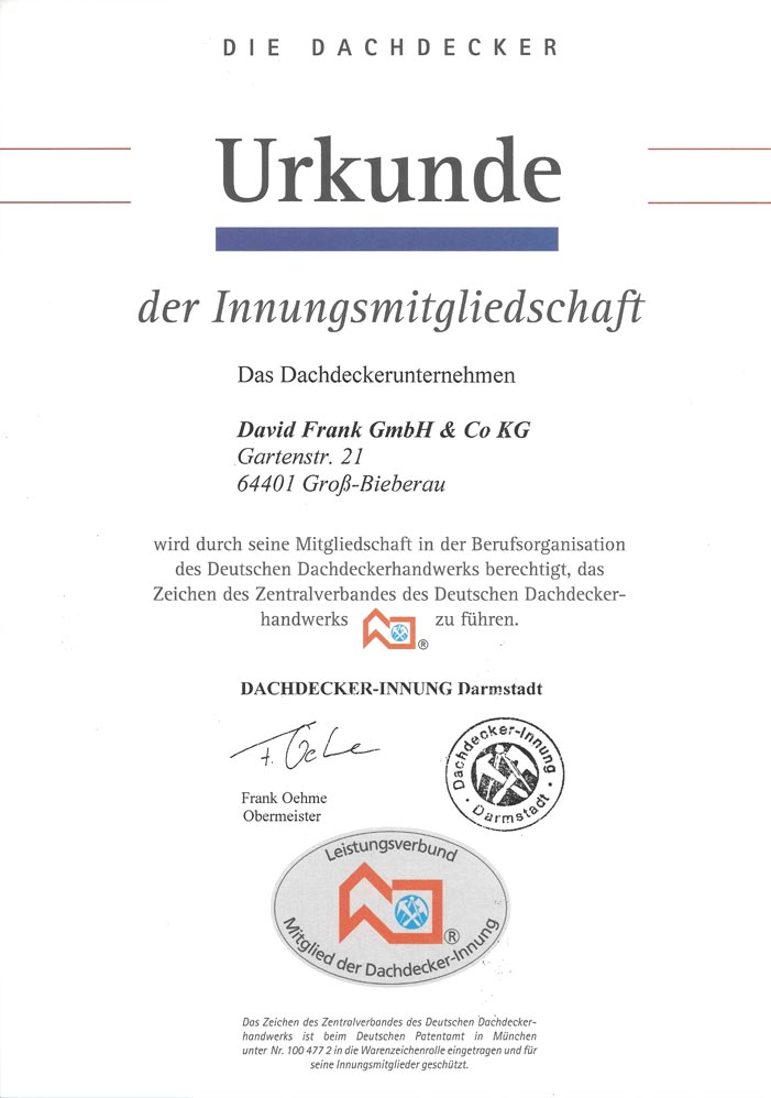 Urkunde Innungsmitgliedschaft