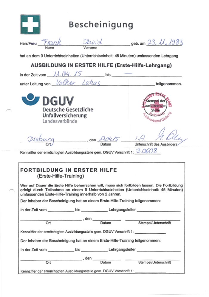Bescheinigung DGUV