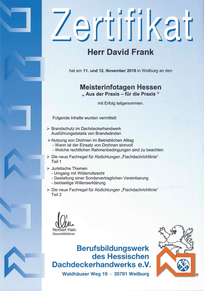 Zertifikat Meisterinfotage