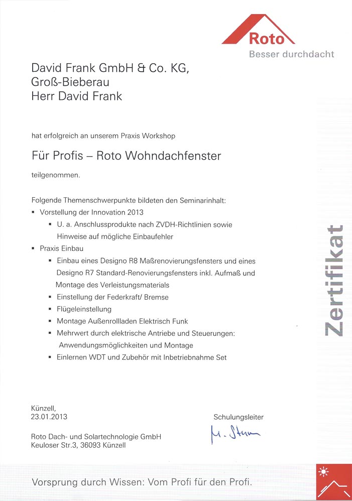 Zertifikat Roto