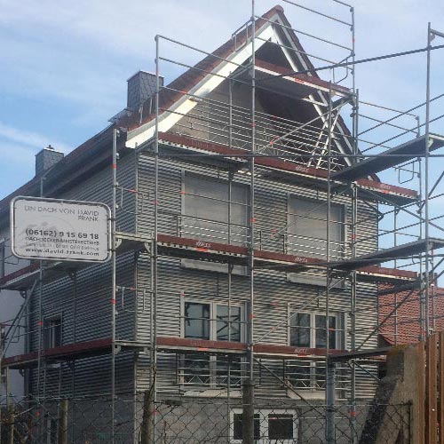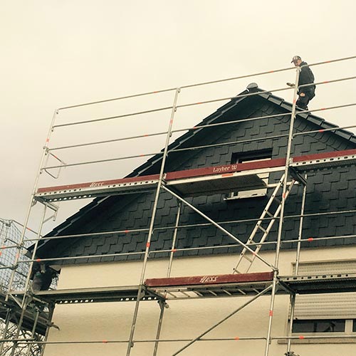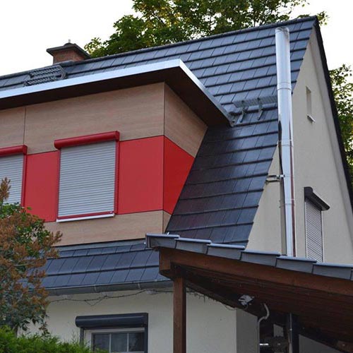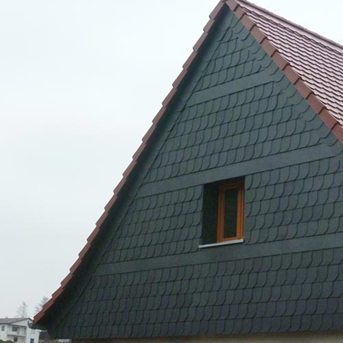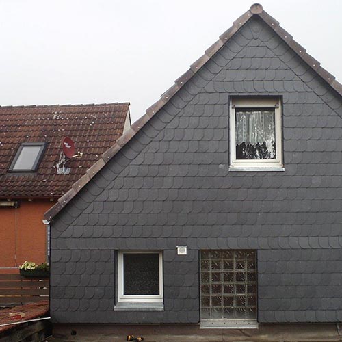 Fassadenverkleidung mit Naturschiefer in gezogener Rechteckdeckung