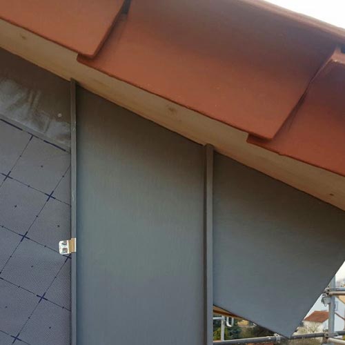Schornsteinverkleidung in Titanzink mit Stehfalz